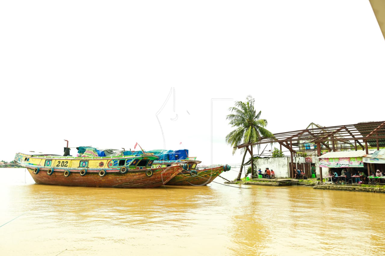 Perahu-perahu pengangkut hasil bumi bersandar rapat di tepian, sementara aktivitas distribusi barang berlangsung sejak pagi hingga petang. Sungai bukan sekadar aliran air dan jalur transportasi, melainkan urat nadi ekonomi warga yang hidup dan menggantungkan penghasilan di sekitarnya.