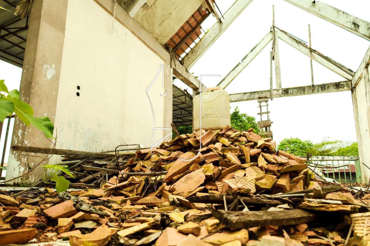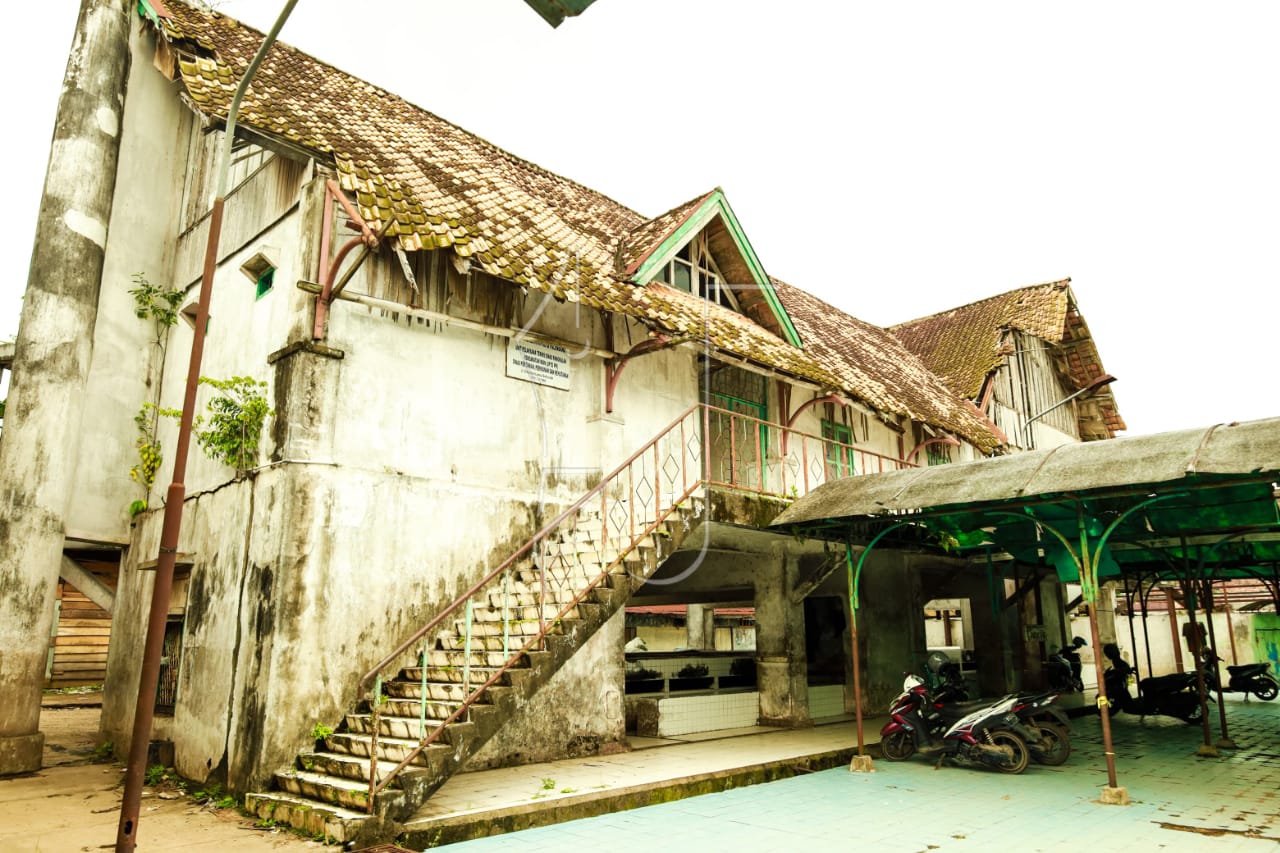 Di sisi lain kawasan, bangunan-bangunan lama berdiri mengelilingi pasar. Struktur kayu dan tembok tua masih menopang aktivitas yang tersisa. Dinding dengan cat mengelupas, kayu-kayu lapuk, serta atap yang mulai berkarat menjadi penanda usia bangunan yang tak lagi muda.